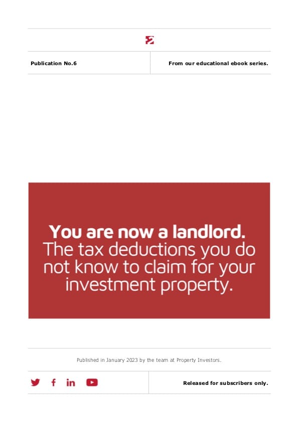 It also discusses expenses deductible over successive years and provides a disclaimer on the unique skills of the Property Investors team.